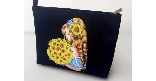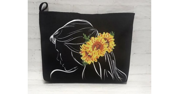 Косметичка під вишивку бісером «Дівчина з соняхами» (Косметичка чи набір).