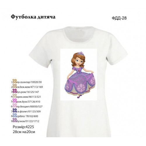 0 оглядів Пан Бисер предлагает Вам детскую футболку для вышивки бисером или нитками "Принцесса София".